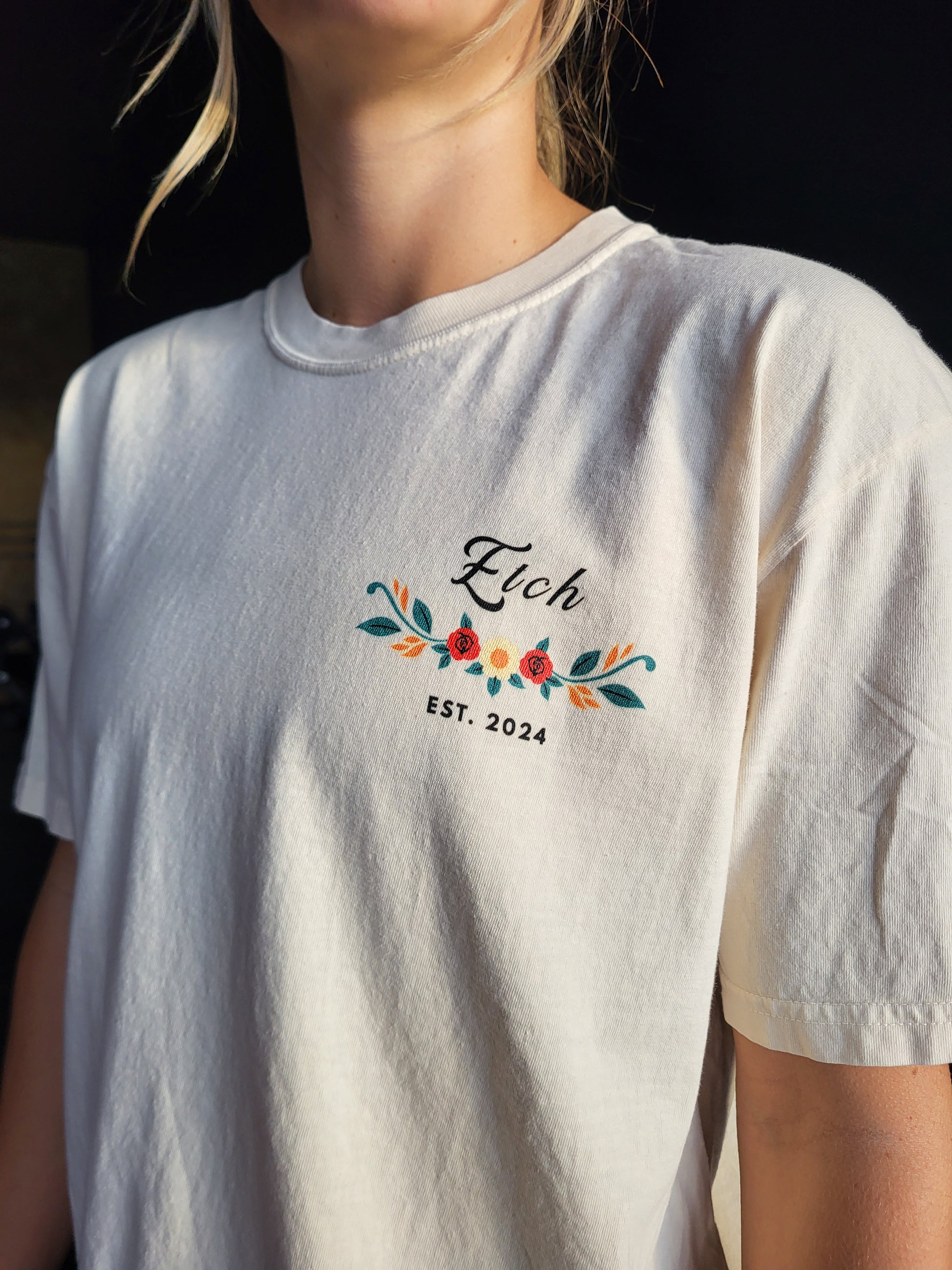 This tee has a heavy yet soft feel. The oversized fit gives off a classic vibe while staying comfortable. If you have any questions, feel free to reach out on social!